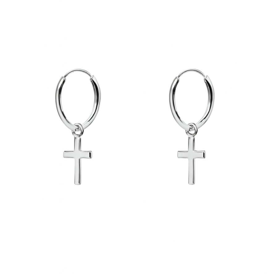 Argollas pequeñas de plata 925 con delicado colgante de cruz. Un diseño minimalista y sutil, ideal para quienes prefieren joyas discretas pero con significado. Perfectas para uso diario o para combinar con otros aros si te gusta el estilo mix & match.