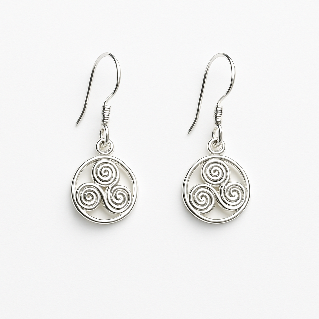 Aros delicados con diseño trisquel circular, símbolo de equilibrio, movimiento y armonía. Un estilo liviano y elegante que acompaña perfectamente el día a día, aportando un toque sutil de significado a tu look.